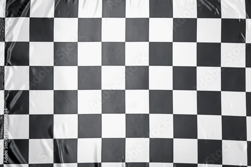 © New Africa, Fototapeta premium Checkered finish flag as background, top view