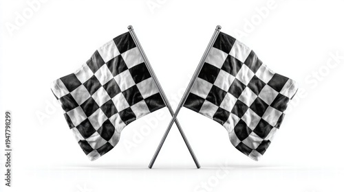 © PixelCrafted, Fototapeta premium Checkered flags crossed against a white background