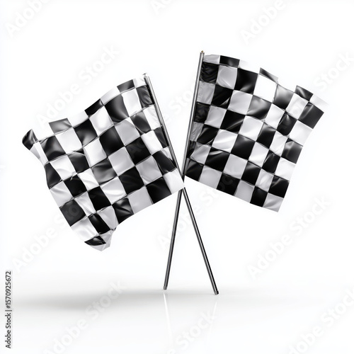 Fototapeta premium Checkered Flags: Race Finish , white background cut out PNG