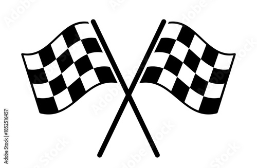 © Comauthor, Naklejka premium Checkered race flag cross icon. Racing flag, finish crossed, start, car racing, sport, automotive - stock vector.