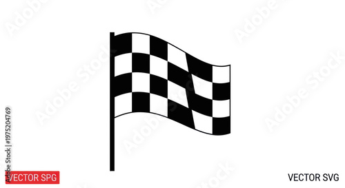 © anis, Obraz premium Checkered Racing Flag Waving - Black and White Finish Line Symbol
