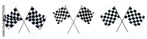Fototapeta premium Checkered racing flags for motorsport competition, finish line and speed isolated on transparent background