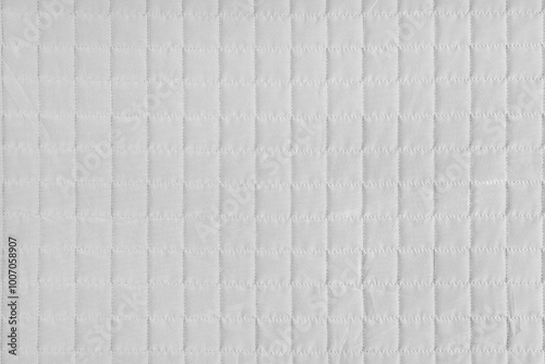 Obraz premium Checkered stitching pattern, white quilted fabric background. Blanket stitch square texture
