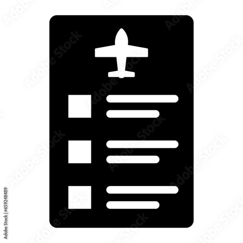 Obraz premium Checklist of plane travel itenary solid glyph icon