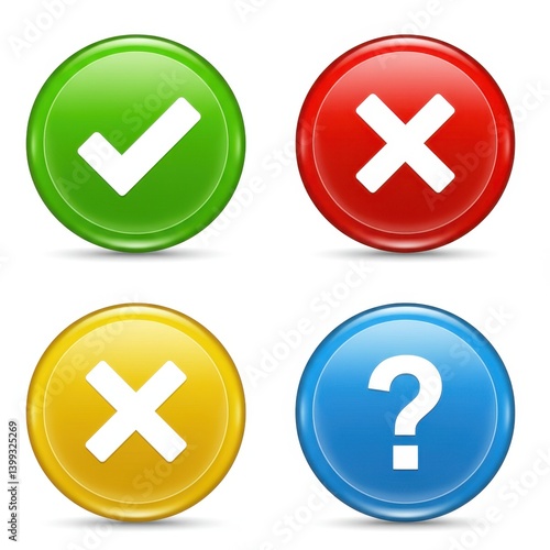 Obraz premium Checkmark cross question buttons on white background