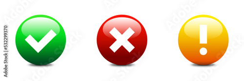 Fototapeta premium Checkmark or tick and cross glossy button. Security buttons set. Flat vector...