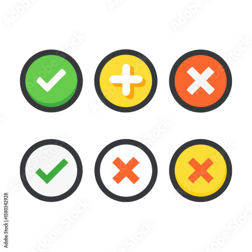 Fototapeta premium Checkmark Plus and Cross Icon Set on Transparent Background