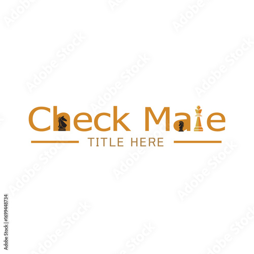 Fototapeta premium CheckMate Text Logo Design with Chess Pieces – Minimal Modern Vector Logo...