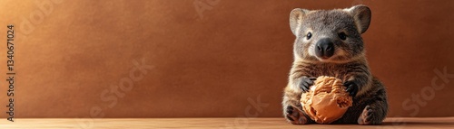 © Cherrita07, Obraz premium Cheeky Wombat Savoring a Peanut Butter Treat in a Cozy Studio Setting