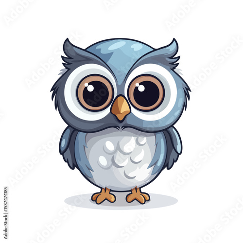 © Angel, Obraz premium Cheerful and adorable owl icon for vector illustration in isolated background