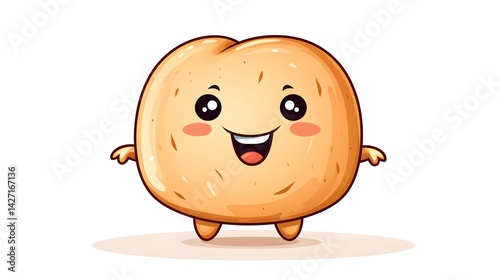 © Mitchel, Obraz premium Cheerful and delightful small round bread snack with cute and funny appearance