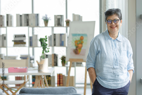 © Bangkok Click Studio, Obraz premium Cheerful Asian artist at home
