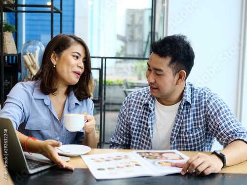 Fototapeta premium Cheerful Asian colleagues are working in cooperation.