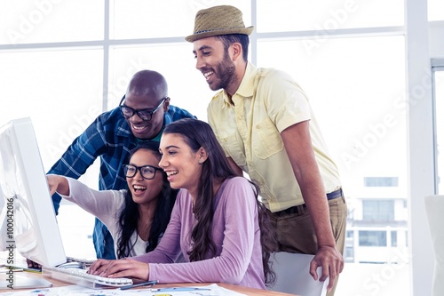 Fototapeta premium Cheerful business team working over computer