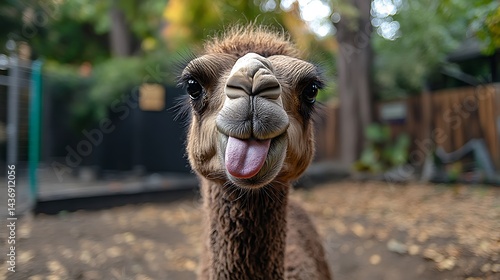 © Chanal, Obraz premium Cheerful Camel Smiling - Playful Animal Close-up Photo