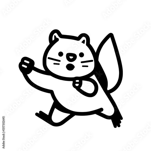 Fototapeta premium Cheerful cartoon animal dashes playfully through a whimsical landscape in black and white, embracing adventure and joy