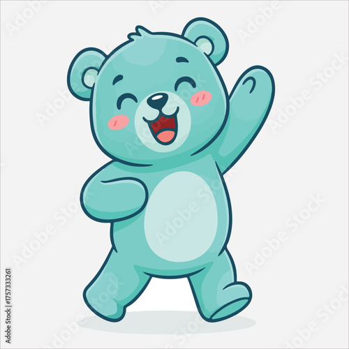 Naklejka premium Cheerful Cartoon Bear Waving and Smiling with Rosy Cheeks and Open Mouth.