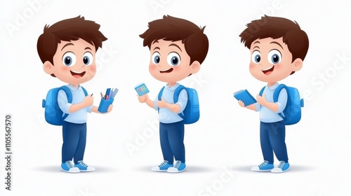 Fototapeta premium Cheerful Cartoon Boy Engaging in Fun Activities with School Items