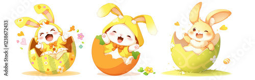© Level UP, Obraz premium Cheerful Cartoon Bunny Peeking Out of Easter Egg Easter Joy Concept on Transparent Background