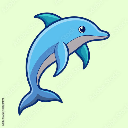 © SharikaShammi, Fototapeta premium Cheerful cartoon dolphin jumping against a light green background illustration