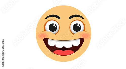 Fototapeta premium Cheerful cartoon emoji face with big eyes and smile on white background