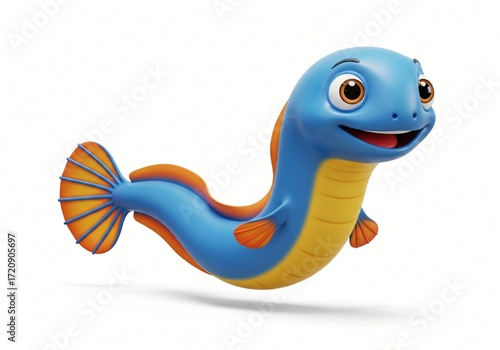 Obraz premium Cheerful Cartoon Fish Character 3D Render Blue and Orange Swimming Happy...