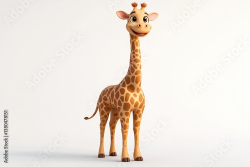 © Viktor, Obraz premium Cheerful cartoon giraffe with big eyes and friendly smile, showc