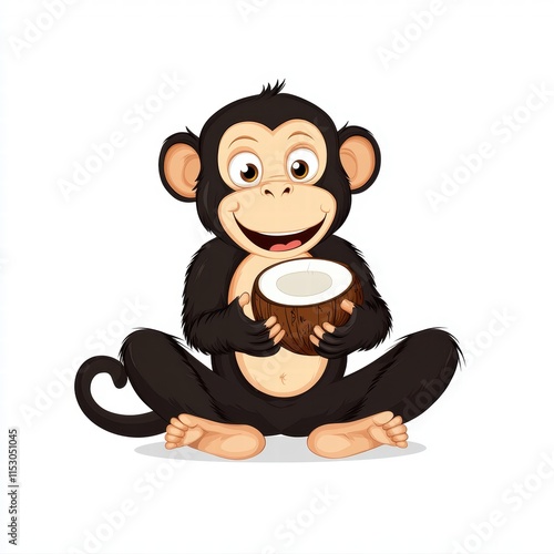 Fototapeta premium Cheerful Cartoon Monkey Holding Coconut with Happy Expression