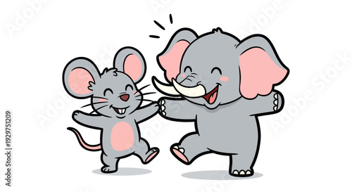 Obraz premium Cheerful cartoon mouse and elephant playing together, representing happy animals