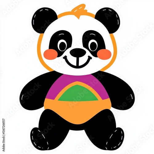 © Bounpaseuth, Fototapeta premium Cheerful Cartoon Panda Illustration with Orange and Purple Outfit