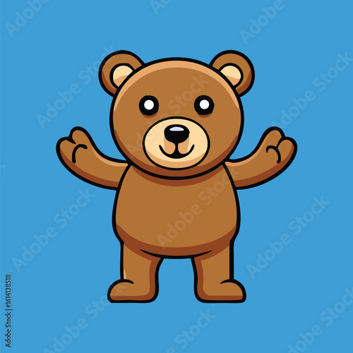 © Rony, Obraz premium Cheerful cartoon teddy bear is standing with outstretched arms against a blue background