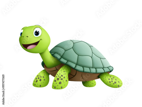 Fototapeta premium cheerful cartoon turtle with bright green shell and friendly smile, perfect for childrens illustrations or educational materials.