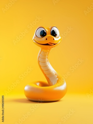 © Doris, Fototapeta premium Cheerful Cartoon Yellow Snake With Big Eyes In Coiled Pose