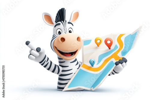 © Alina, Fototapeta premium Cheerful cartoon zebra with a map