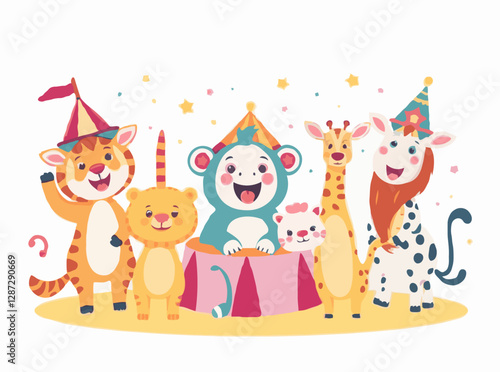 Fototapeta premium Cheerful Circus Animals in Fun Vector Designs