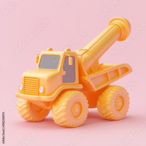 Naklejka premium Cheerful Construction Crane Toy on Pink Background