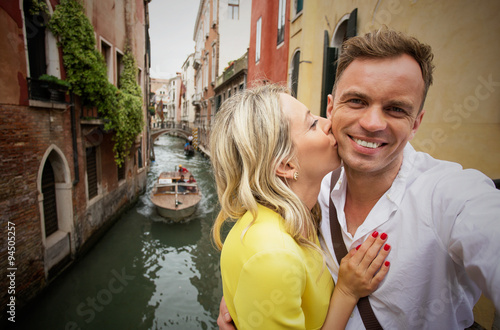© Kaspars Grinvalds, Fototapeta premium Cheerful couple in Venice