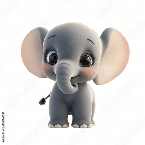 © Kobkaew, Obraz premium Cheerful 3D Cartoon Elephant in Fun Wildlife Scene