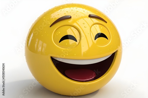 Fototapeta premium Cheerful 3D yellow smiley icon with a joyful expression, a fun symbol of...