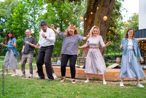 Fototapeta premium Cheerful dance party outdoors, featuring individuals of different ages...