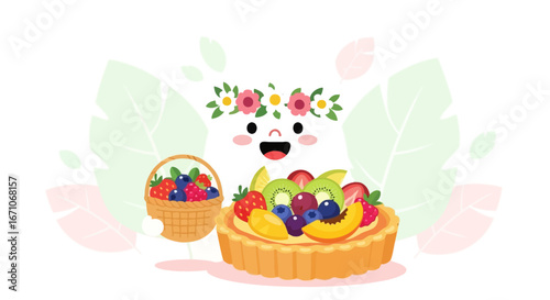 Obraz premium Cheerful Display Of Fruit Tart, Berries, And Floral Embellishments For...