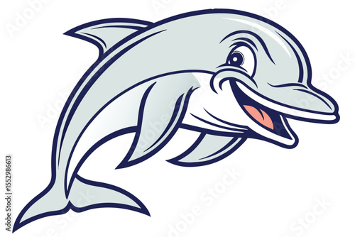 Fototapeta premium Cheerful dolphin with a wide smile swims forward, a vibrant aquatic cartoon...