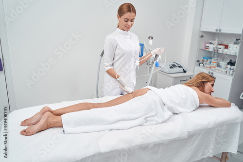 © Svitlana, Obraz premium Cheerful female professional doing massage for client