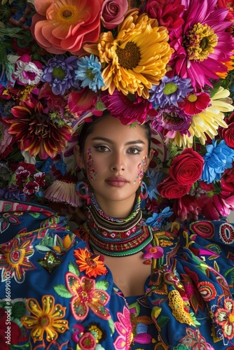 © Alla, Fototapeta premium Cheerful flower fiesta, joyous feria de las flores, blossoms - celebrating the exuberance of Colombia's floral festival, where blooms abound in a colorful and festive atmosphere.