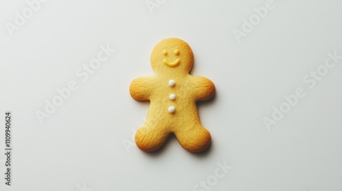 Obraz premium Cheerful Gingerbread Cookie on White Background
