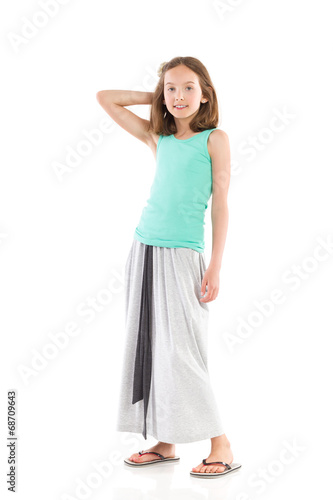 © studioloco, Fototapeta premium Cheerful girl in gray long skirt