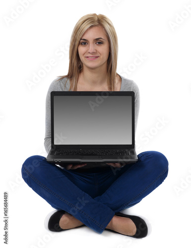 Fototapeta premium Cheerful girl with laptop