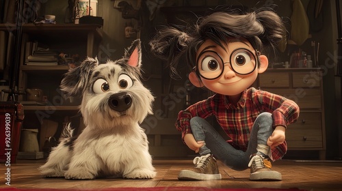 Obraz premium Cheerful Girl with Sneakers and Cartoon Dog: Perfect Poster for Energetic...