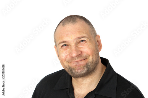 Obraz premium Cheerful happy young man with a characteristic smile. Concept emotion happiness