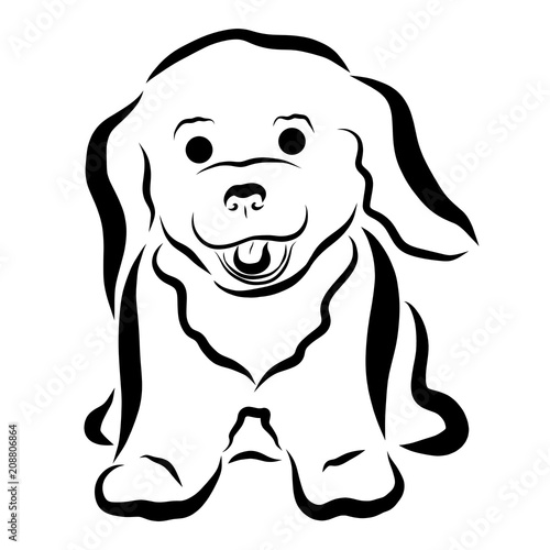 © YuliaRafael Nazaryan, Obraz premium Cheerful little fluffy puppy, painted in black wavy lines